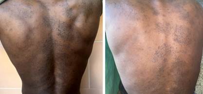 Se presenta el caso de un paciente masculino de 28 años, de piel negra, con antecedente de asma bronquial, quien acudió a la consulta externa de dermatología del Hospital Universitario General Calixto García. Refería el aparecimiento de lesiones en la región dorsal de aproximadamente dos meses de evolución, caracterizadas como "pequeños granitos" que ocasionaban ligera picazón y sensación áspera al tacto.